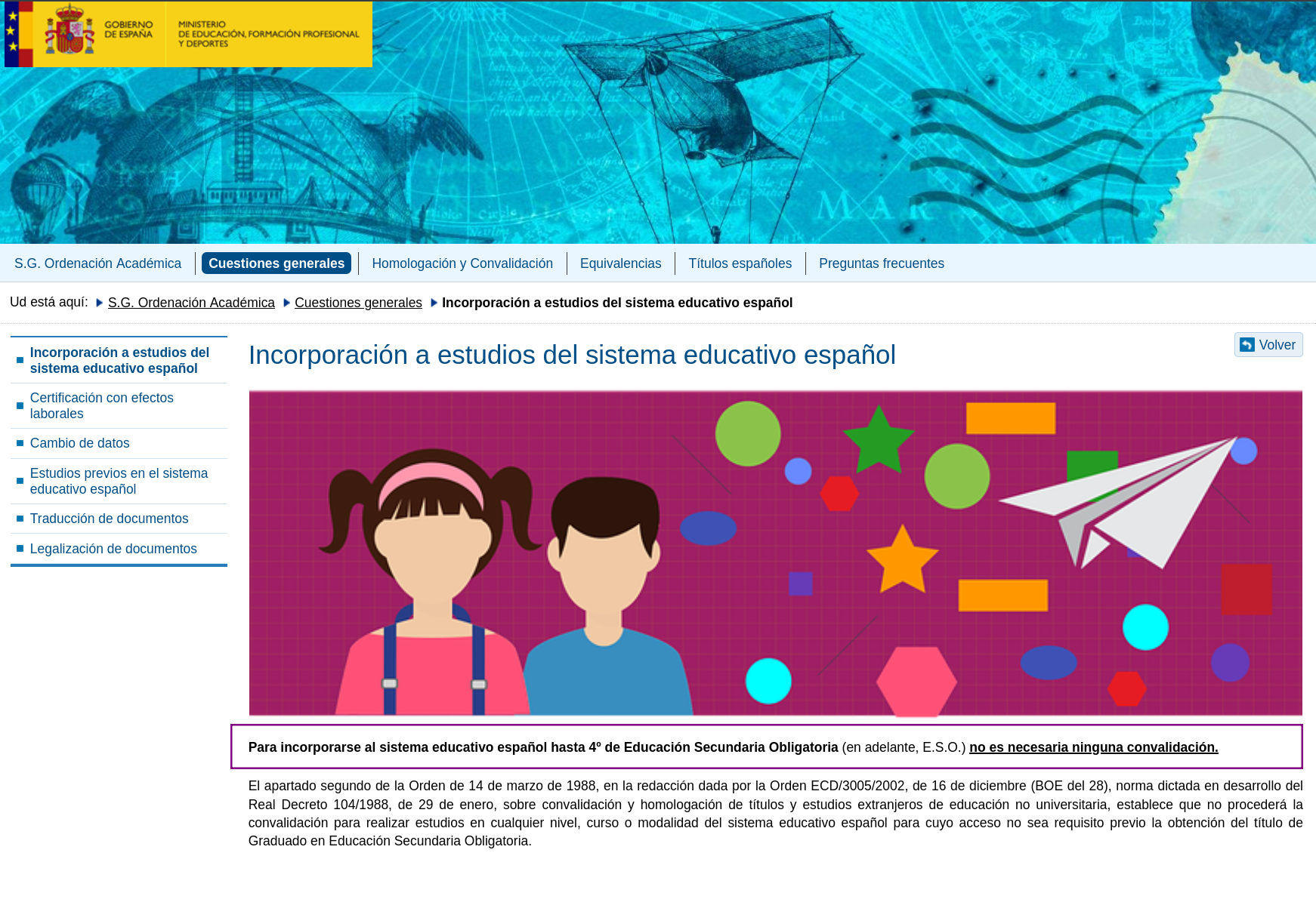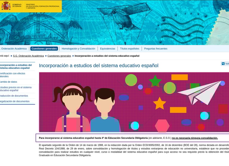 Así lo podemos leer también en la página oficial del Ministerio de Educación, en su apartado "Incorporación a estudios del sistema educativo español".